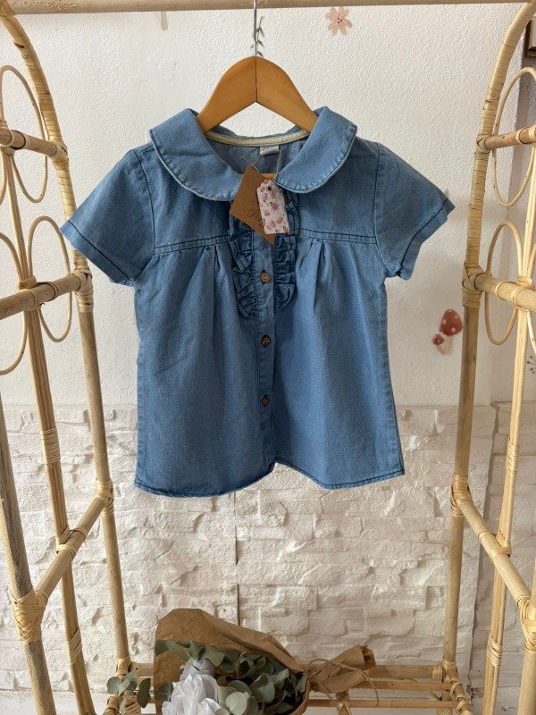 Volados en la parte del pecho,frunce y pequeñas pinzas.