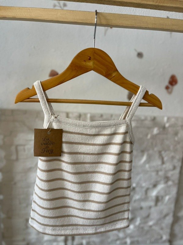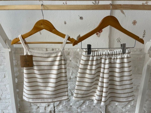 Conjunto compuesto por dos piezas en color beige con rallas marrón claras